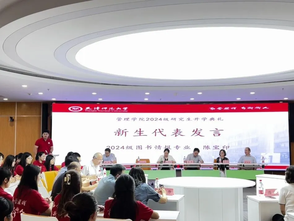 教师代表工商管理系系主任任枫在发言中,深入分析了研究生阶段的学习生活,他建议同学们要注重“自主学习”,通过广泛阅读和深入思考,培养具有批判性思维的能力。他鼓励同学们在学术探索中脚踏实地,勤于研究,同时珍惜在校的宝贵时光,勇于面对挑战,不懈拼搏。任老师还强调,同学们应努力培养勇于担当的精神和团结协作的能力,以自主学习为基础,发展批判性思维,为未来的学术和职业生涯打下坚实基础。