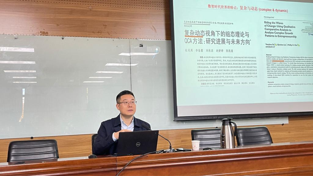 在讲座中,杜教授介绍了复杂性实践和复杂性科学范式、复杂性分析(从要素视角到组态视角)、QCA方法与复杂性分析、因果复杂性和复杂动态问题的新进展并分享了关于要素视角和组态视角下营商环境激发市场主体活力的动力机制。杜教授还对动态复杂时代的管理研究问题进行了阐述,建议大家要更加重视方法论的研究并对QCA研究方法和范式、QCA研究方法前期需要做的工作、如何利用QCA的方法进行要素分析等问题回答了与会师生的提问。
